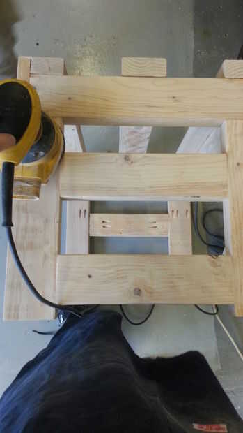 Ahora a lijar los bordes como se muestra, sobre todo los bordes laterales para que tenga un buen lado plano para colocar los costados contra. tiene una especie de taburete mirando feo! Siguiente para cortar el revestimiento...