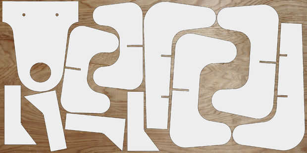 Luego pongo todas las piezas en 2D por lo que podría cortar con un cortador láser. He utilizado madera contrachapada de 4 mm espesor.