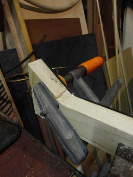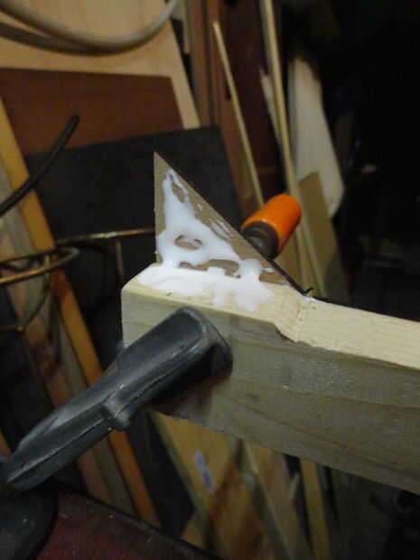 Todo lo que queda por hacer es fortalecer el soporte trasero. Usé 3 centímetros gruesos listones de madera entre las dos capas de madera contrachapada. Después de que está montando pieza a pieza con pegamento para madera (sugerencia: use cinta adhesiva para sujetar todo en su lugar).
