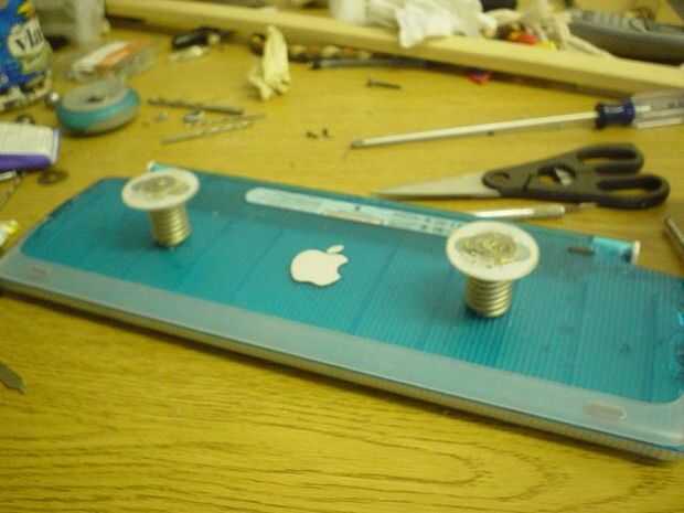 Tornillo de los fondos de ratón en la parte superior de los tacos hasta que haya cerca de 1/8 de una pulgada de espacio entre la espiga y la parte inferior del ratón.