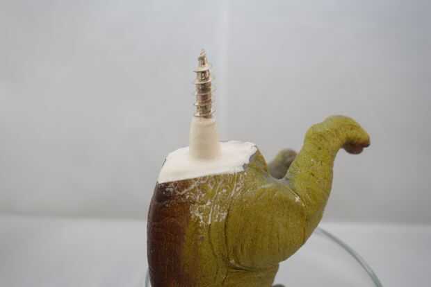 Inmersión primero el tornillo con la cabeza en el yeso mojado. Meneo alrededor de un Asegúrese de que es firmemente allí, sobresale la punta del tornillo de 25mm (1 pulgada) por encima del corte.