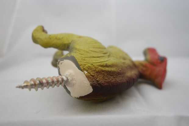 Simplemente perforar un agujero en una pared de yeso (es esto correcto incluso) que ha sido apoyada por una pieza de contrachapado. Y atornillados en mano.