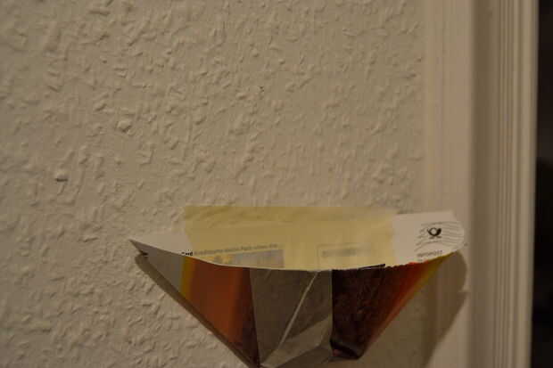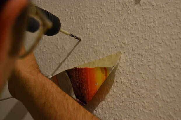 Pro tip: Cuando taladre en muros de piedra, siempre pega una pequeña bolsa de papel debajo de los orificios antes de perforar para recoger todo el polvo del agujero y evitar un desastre.