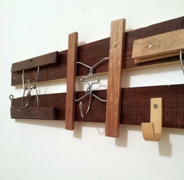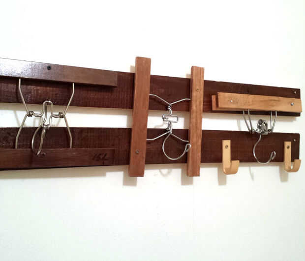 Los dos ganchos de madera poco estaban en la pared en uno de los closets de mi apartamento. Nunca he usado, así que les llevó hacia abajo y había añadido a mi nuevo perchero.