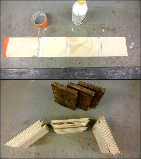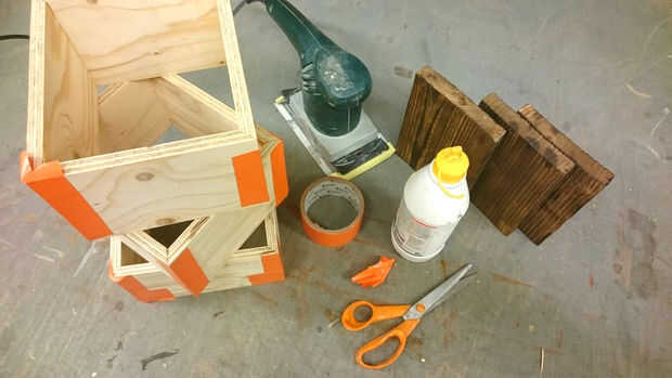 Mi diseño también tenía así que la próxima que hasta hice estos tres cajones. Decidí hacerlos de contrachapado de 1,2 mm (para tener más espacio) y más adelante pegamento en las caras. Por supuesto, como siempre, hay toneladas de maneras de hacer cajones (cajas). Fui con esquinas a inglete. Parte Cool con esta técnica es que no tienes que utilizar las pinzas. Cinta regular funciona bastante bien. Aún así, terminé también añadiendo pocos brad uñas pero esto no es realmente necesario. Echa un vistazo este video sobre cómo hacer distintas articulaciones que trabajan en los cajones. Después de dejar que el pegamento seco también he añadido las caras de la misma madera de granero.