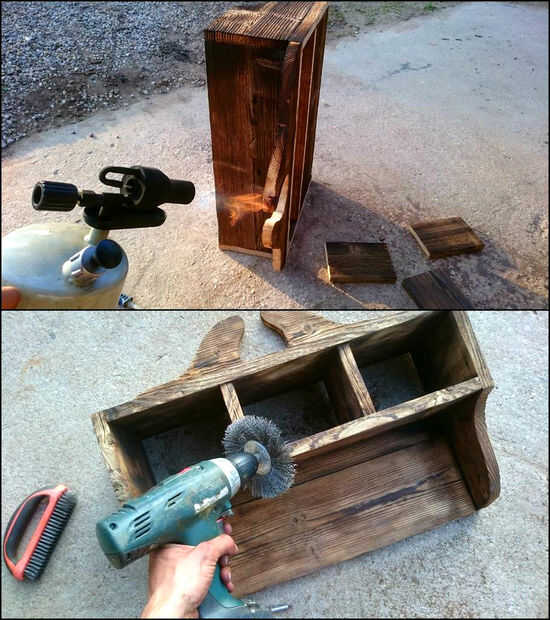 Continuación hasta volví al soplete y quemó una vez más. Este se deshizo de las superficies de corte blanco. De sellador hasta intentó utilizando cepillo de alambre radial del taladro. Esto funcionó muy bien!
