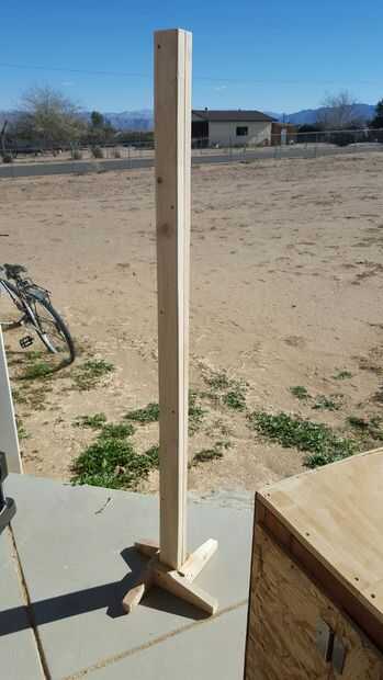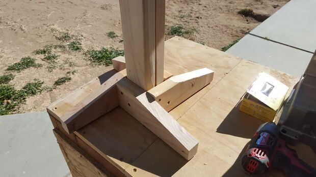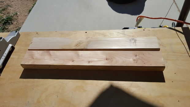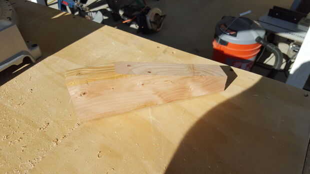 Los 2' piezas que cortamos antes de que se acostumbra aquí. I ambos corte por la mitad y luego utiliza una sierra de ingletes para hacer un corte angular en la parte superior. Después con mucho cuidado intentar atarlos todos uniformemente para no tambalearse el pedestal, lijarlos demasiado.
