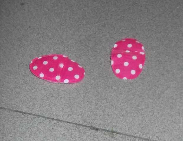 Paso 2: Cortar la forma oval de 4, 6cm de largo, 3cm de ancho en la tela de punto para 2 oídos.