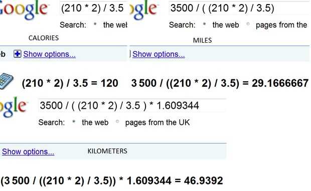 3500 / ((peso en libras * 2) / 3.5) * 1.609344