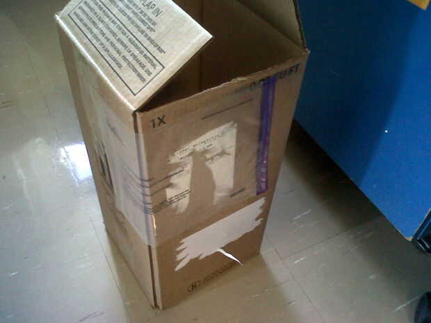 Encontró la caja. Parece que alguien tomó el guía y arrancó las etiquetas. Probablemente a la investigación de la empresa/comprobación de evidencia de la huella digital de ADN.