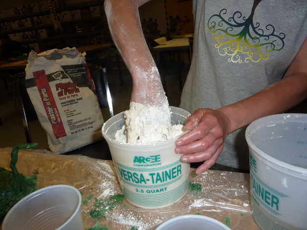 este es el método más barato y más fácil de preparar un molde para fundición a la cera perdida. Todo lo que necesita es sus esculturas de cera con bebederos, escayola, agua y contenedores.