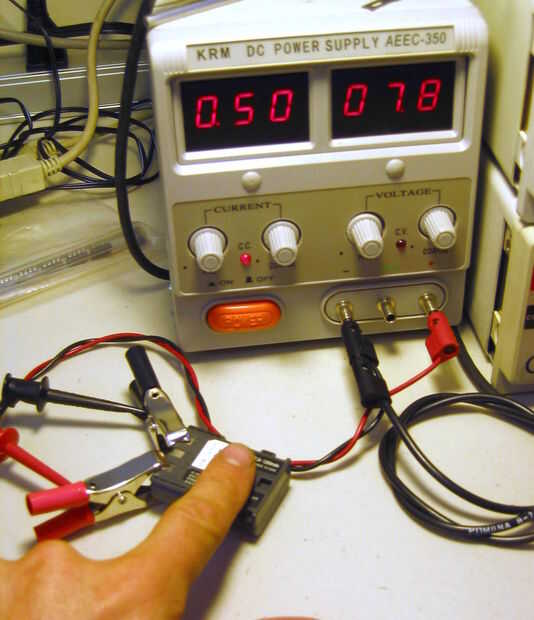 Aumente la tensión y las perillas de límite actual hasta 500 miliamperios (0,5 amperios) está fluyendo en la batería. Si te apetece ser mirada cuidadosa hasta cuanta corriente utilizan los expertos.