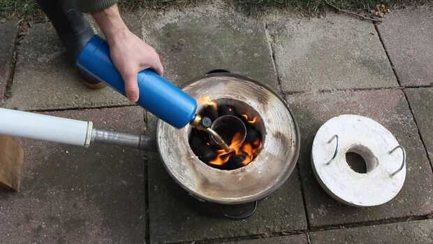 Una vez que sus desechos pueden seguir adelante y fuego hasta la fundición. La fundición mini ejecuta de carbón por lo que debe ir a comprar algunos encendedor de carbón de leña para obtener comenzó rápidamente. Después de su fundición es en un rato el crisol comenzará dando vuelta a rojo caliente y usted puede comenzar a añadir en el aluminio. El crisol que estoy usando está hecho de la parte inferior la mitad de un extintor de incendios. Después de un corto período de tiempo va usted debe ver que el aluminio comienza derretía. Una vez que todo el aluminio está en forma líquida puede apagar el secador de pelo y se preparan para verter en el molde. BE cuidado, asegúrese de usar un EPI adecuado antes de verter hacia fuera el aluminio. Usé un par de pinzas de barbacoa vieja para verter el metal fundido en el molde.