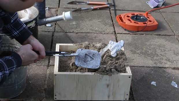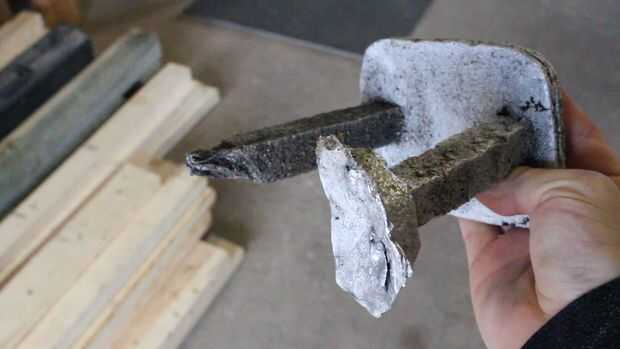 Después de unos 5 minutos pasa el aluminio debe han endurecido lo suficiente que puede sacarlo de la arena. Asegúrese de no tocar porque todavía está muy caliente. Usé un par de esclusas del canal para tirar de mina de la arena y luego cayó en un balde de agua para refrescarse apagado.