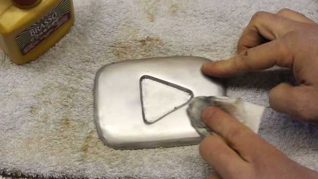 Todo lo que me quedaba hacer era dar mi botón de play de YouTube un acabado liso y brillante y cortar los dos bebederos fuera de la parte posterior. Después de algunos, limar, lijar, lijadoy pulido, resultó bastante impresionante en busca! Sólo solía Brasso para dar el aluminio brillo un poco, pero una lo mejor es utilizar una rueda de pulido.