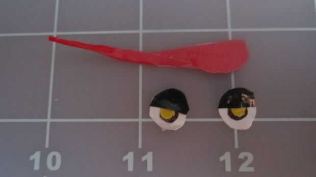 2) para la parte roja, cortar la forma de 2 y 1/4 pulgadas del zarzo y utilice cinta adhesiva roja para sujetarla en.