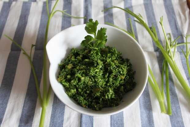 popularizada por Esme Gigi Genevive miseria, de "Una serie de acontecimientos desafortunados" de Lemony Snicket libro 6.Receta inspirada en Kathryn Kingsbury, en http://www.herbcompanion.com/recipes/08_09_05-parsleyTambién puede ver receta de Gi