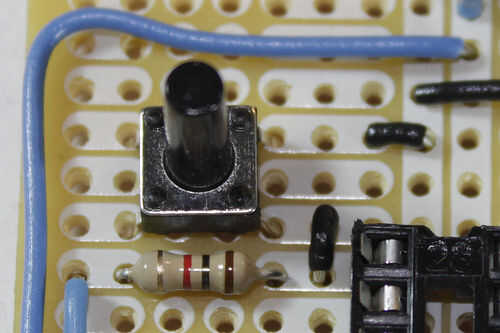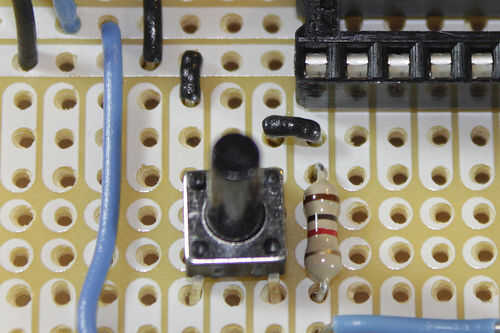 Para el botón de reinicio estoy usando un momentáneo interruptor pulsador conectado a GND. La clase que te recomiendo tiene 4 patas, sin embargo sólo hay dos que necesitará preocuparse. Utilizando el multímetro para ver qué pares son redundantes (significado siempre conectado, compartir la misma línea). Cuando usted presiona el botón, ambas parejas Haz puente y tierra es compartida con el pin 1, el pin de reset, restableciendo así la Junta.