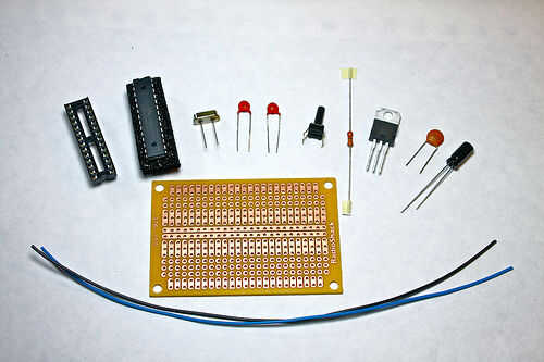 • ATMega168 o 328 microcontrolador viruta w/Arduino bootloader (usted puede utilizar uno a tu Arduino por ahora!) - $4,00-$5,50- comprar unbootloaded mouser(más barato) / compra bootloaded sparkfun(caro)