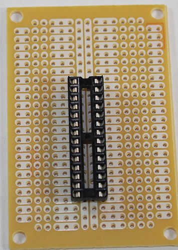 Seguir adelante y todos los 28 pines en, asegurándose de que los pasadores están pegando por el lado cobre de la Junta de soldadura.