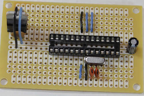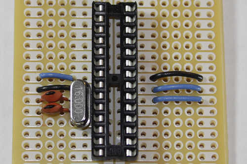 -VCC (+ 5v) tiene que ir a 7, 20 y 21 (el voltaje de referencia analógica).