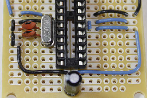 ** Lo que estoy conectando estos pines en este ejemplo tiene sólofines tutorial. Quiero ver exactamente lo que estoy conectando a donde. Si yo estuviera haciendo un tablero para mi propio uso, haría que estas conexiones por debajo de la placa directamente a los carriles de la energía en el centro. Esto puede ahorrar un montón y un montón de espacio, pero sería muy difícil de comprender y seguir este tutorial. Dicho, usted puede copiar esto exactamente, y su circuito funciona muy bien! No más espacio método eficiente - get creative!