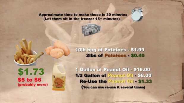 Aquí es el coste de romper. Los costos variarán dependiendo de donde usted vive y qué tipo de ventas se puede encontrar. Y cuánto usted volver a utiliza el aceite. Se puede volver a utilizar varias veces antes de que sea mala. Dependiendo de cuánto se utiliza cada vez. Generalmente lo pongo en el mismo envase (pero no lo mezclo con aceite nuevo) y guárdelo en un lugar fresco y oscuro, como mi despensa. Esfuerzo pero no todo el tiempo, generalmente si empiezo a ver pedazos de cosas. Pero sin duda usted puede colarlo después del primer uso. El USDA, dice "mejor calidad" almacena aceite usado en el refrigerador. Pero no es necesario. Regla general si es color oscuro y huele mal. No la utilice otra vez. Y si se guarda en la nevera, podría obtener un poco de aspecto lechoso, que es aceptable, que desaparecerá, cuando calienta nuevamente.
