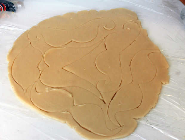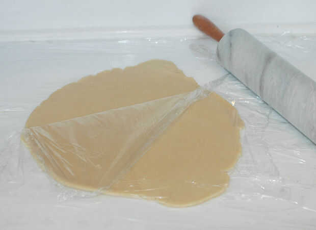 Te recomiendo dividir la masa en dos porciones antes de rodar y mantener la refrigeración. Luego cuando hayas cortado un lote, puede recoger y refrigere las sobras de ella mientras que el rodillo hacia fuera el siguiente lote. Esto mantiene la masa fría y fácil de trabajar.