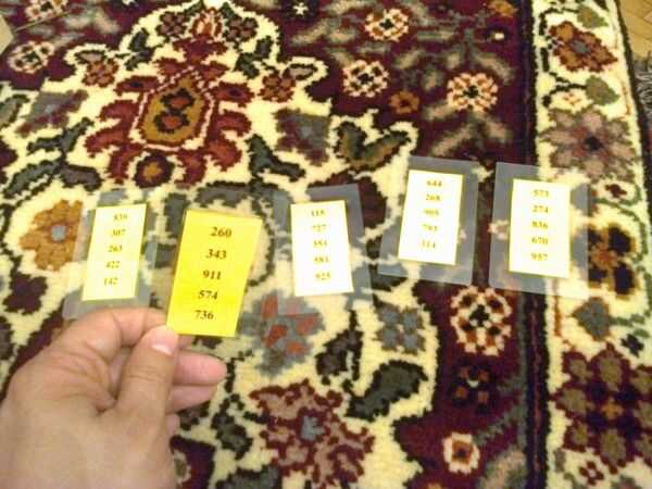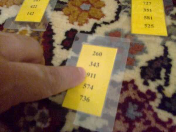 El mago coloca algunas cartas boca arriba sobre la mesa. Estas tarjetas no son las cartas de juego normales, pero los especiales con una gran cantidad de números en la cara, sin orden ni sistema, y su color es el mismo (por ejemplo verde). Lo ideal es 6-9 tarjetas, los números impresos en ellos son dígitos de 3-6. (Ya que usted hará, explicaré los info exactos más adelante.)