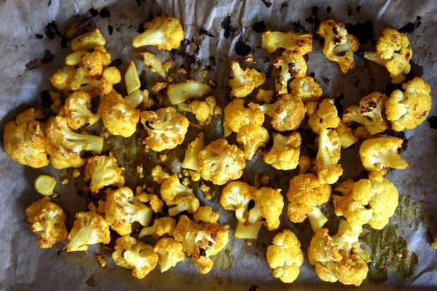 Asado la coliflor en un horno caliente durante 30 minutos, o hasta que estén doradas y