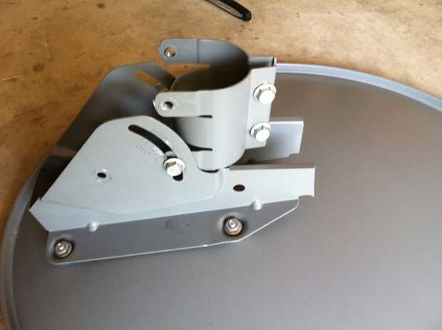 Quiero montar el plato encima de la tubería de metal existente. Para instalar el plato horizontal, he tenido que quitar los dos tornillos superiores de la Asamblea de apoyo existentes y utilizar sólo la parte inferior dos (ver foto).