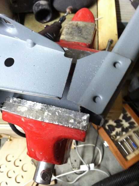 Quiero un comedero de plataforma abierta, por lo que el brazo que por el lado del plato se tiene que ir. Usé una sierra para metales para cortar desde la base. Yo también hacia el lado del brazo del centro, pero no veo que es necesario ahora.