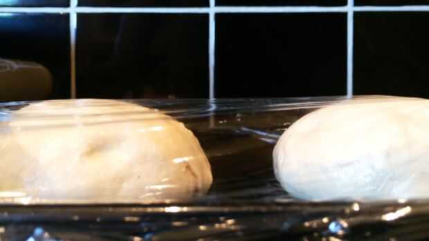 Comenzar agregando la levadura en agua tibia para activar. Mezclar los ingredientes secos y luego añadir la mezcla de levadura y el aceite. Usted puede utilizar una batidora con el gancho de la masa o amasar a mano para 10 minutos. Una vez la masa ha sido necesario. cubra de harina ligeramente y cortar por la mitad. Crear dos bolas y colocar en una bandeja de horno engrasada y cubierta con film transparente. Dejar para reposar 1 hora para levantarse.