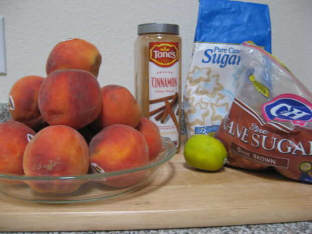 Mezclar los ingredientes secos (harina, azúcar, especias) en un tazón grande. Añada los duraznos y el jugo de limón.