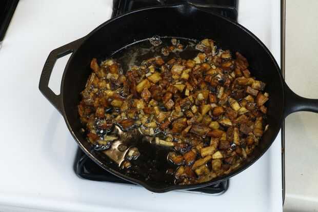 5) cubrir la sartén con una tapa (u otra sartén de hierro fundido) durante unos 5 minutos.