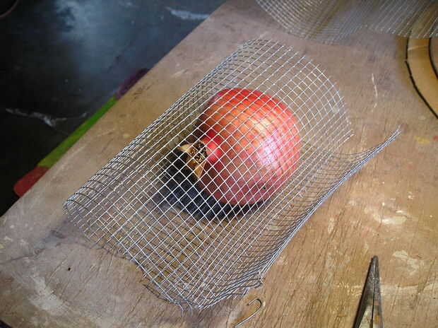 tenía algunos alambre conejo en mano, así que corte un pedazo lo bastante grande como para rodear una Granada. Al manipular el cable con las manos, pude construir una jaula áspera.