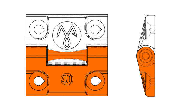 Después de un montón de trys, la mejor relación fue cincuenta soporte bisagra cincuenta, ahorrado como 2 + 4 + 2 = soporte de la bisagra. El perfil de la bisagra obtiene mayor suavemente hasta la zona del cañón. Los agujeros de tornillos de cabeza avellanada hace los tornillos tan discreto como sea posible mientras empuja fuertemente la bisagra para su apoyo. He añadido los agujeros de lágrimas para evitar overang goteo en los orificios durante la impresión.