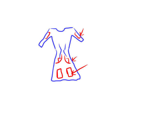 a menudo no hay un lugar conveniente para guardar una cartera y teléfono celular para que los bolsillos en la cintura (que debe ser accesible por ambos lados pues el vestido es reversible) deben ser lo suficientemente grandes como para un número en un lado y una billetera en el otro.