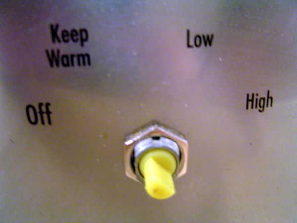 Truco #2: enchufe la olla en el temporizador, luego la enchufe en la pared. Ajuste el temporizador para cocinar baja durante unas 7 horas. Poner minas en para 1-8 am; de esa manera es listo en 7 y caliente para todos los que se pone de pie detrás de mí.