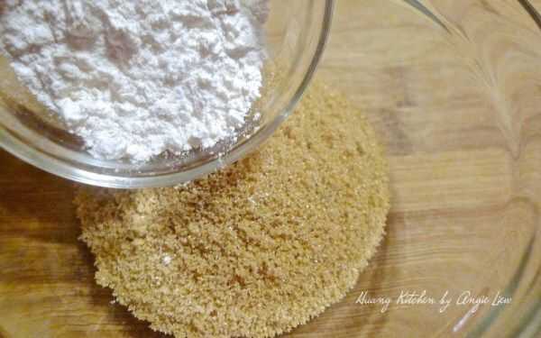 Paso 21: En un tazón pequeño, añadir el azúcar marrón seguido por harina.