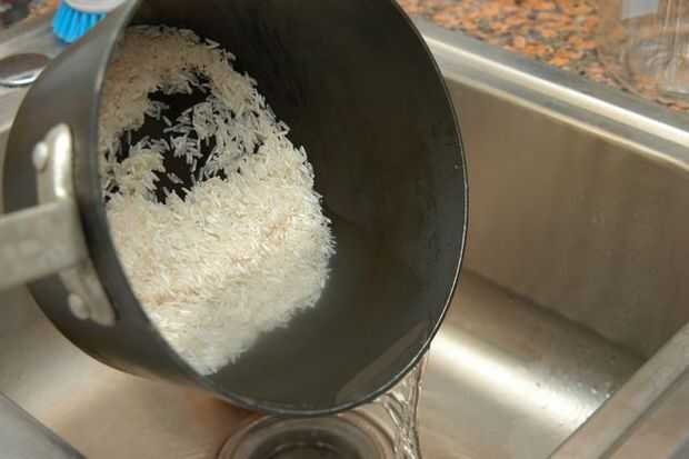 Paso 2: Enjuague el arroz. Opcional pero se recomienda.