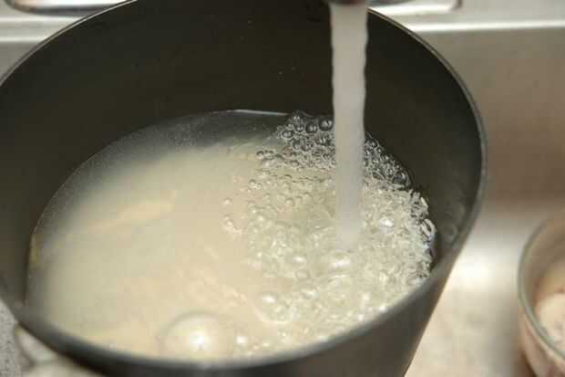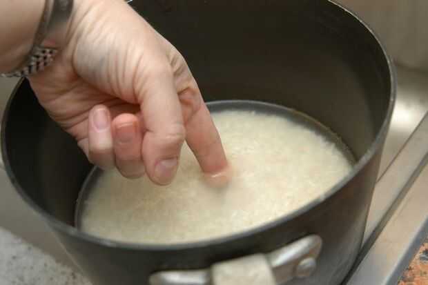 Ahora escurra la mayor parte del agua del último enjuague y vuelva a llenar la olla acaba de volver al nivel que anotó con el agua medido. La razón de este método en comparación con sólo drenaje y añadir 1,5 tazas de agua por cada taza de arroz ahora es que el arroz haya absorbido agua durante el proceso de enjuague, y terminarás con arroz blando si no compensar esto.