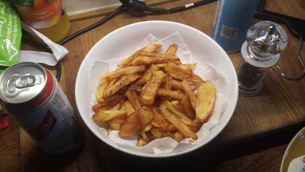 Si lo has hecho correctamente las fichas deben han ligeramente pegadas y ungreasy se romperán al caer en un recipiente. Si necesita quitar del aceite Envuélvalas en toallas de cocina y darles una buena sacudida.