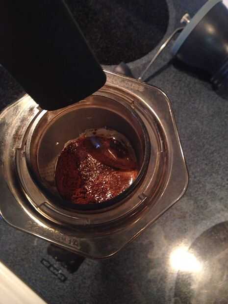 Sólo tiene que añadir un poquito de agua al principio, esto permite que el café absorbe el agua completamente antes de ser saturado y posteriormente con espuma. Revuelva para arriba y deje respirar durante unos segundos.