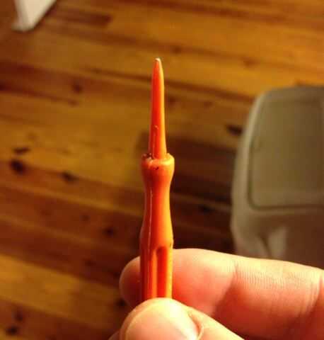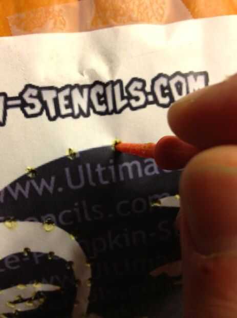 Este paso puede ser agotador. Esencialmente, usted quiere perforar la calabaza usando cualquier número de herramientas de perforación. Los kits de la tienda compró llegará un poker bastante robusto, pero me gusta usar una herramienta de bloqueo de cosecha que se puede obtener de Kobalt (ver imagen). Es más puntiagudo y hace trabajo de incluso la calabaza más densa. También, muchos kits vendrá con rolling perforaters que son absolutamente perfectos para curvas cerradas. Recuerde, los puntos más haces, más fácil será el corte. No tenga miedo de meterse su puñalada.