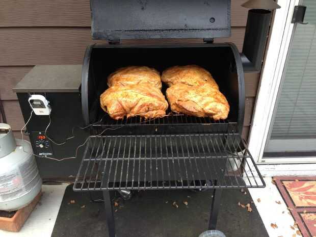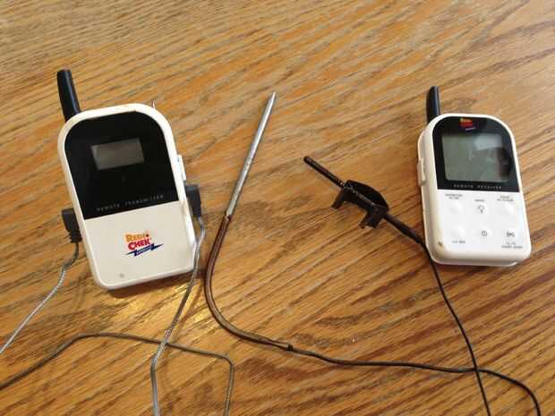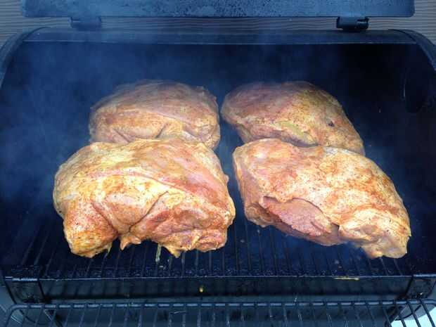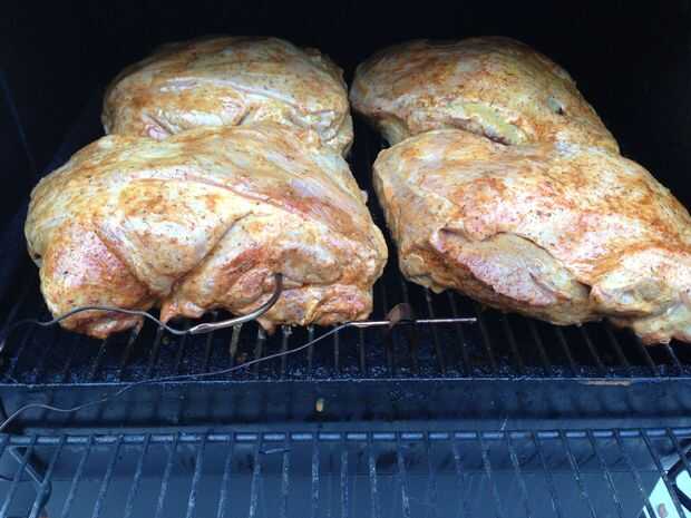 Usar un termómetro remoto que tiene sensores de temperatura de la parrilla y la temperatura de la carne. Introduzca la carne la sonda en el centro de la carne de cerdo y asegurarse de que no se toque el hueso. El termómetro remoto no es un requisito, pero los cortes hacia abajo en el número de viajes que tienes que hacer fuera para comprobar cosas.