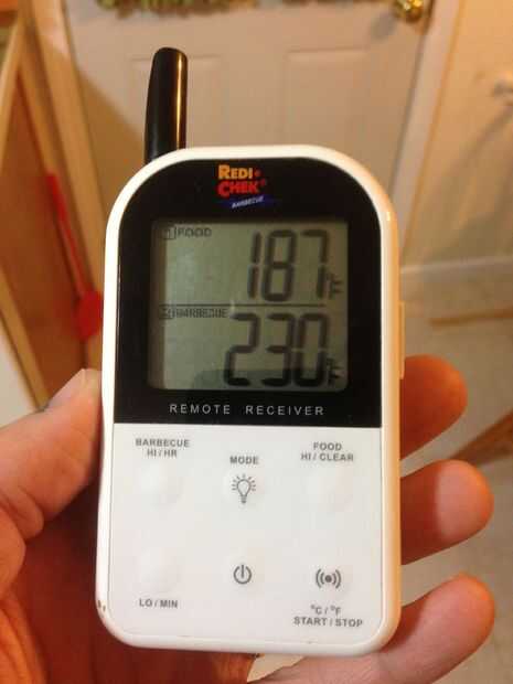 Yo también uso un termómetro de lectura instantáneo segunda para probar a la temperatura de las culatas. Cuando la carne se cocina adecuadamente, en pleno las diapositivas solo termómetro sonda.