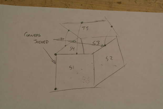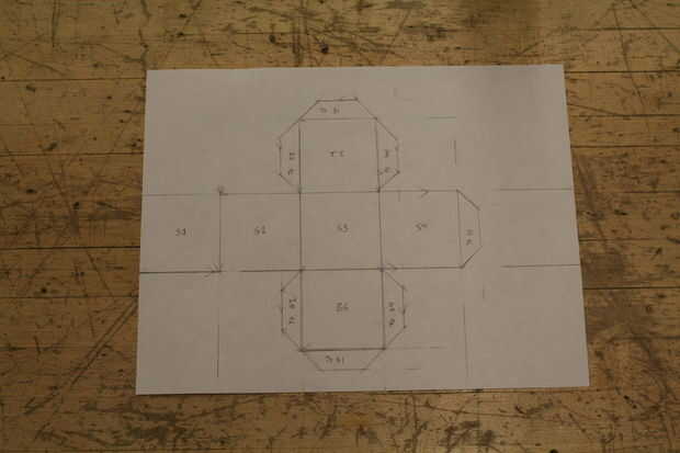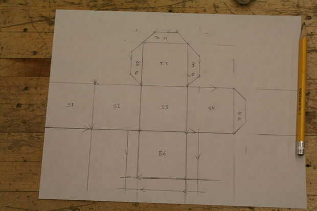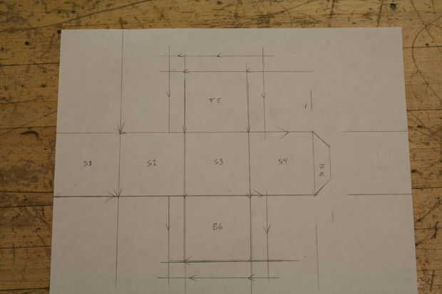 Ahora tenemos las pestañas más 6-3 en los lados abiertos de la parte superior y 3 en la parte inferior. Empezar marcando una flecha 1/2 una pulgada a un lado de la parte superior, luego hacia la parte inferior y marque otra flecha. Dibujar una línea para hacer dos pestañas como se muestra en cuadro 8. Repita para el otro lado repetir para los otros lados de la parte superior e inferior y luego añadir otra pestaña en la parte superior de la parte superior y la parte inferior de la parte inferior. ¿Claro como el barro? Ver cuadro 9 para una explicación más clara. Ahora debe tener un rectángulo en cada lado abierto de la parte superior e inferior.