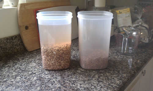 Para cocinar, necesitará usar una olla que contiene al menos dos veces el volumen como toman sus habas remojadas. Los frijoles ampliarán un poco más cuando les cocine y no quiere lleno en allí. Para nuestros propósitos aquí, usted puede usar un pote de 1 galón, idealmente con un fondo pesado. Sartenes y ollas de finas no distribuyen el calor muy bien, que puede conducir a la quema y los puntos calientes que cocinar los alimentos de forma desigual. Pesado es el camino a seguir.