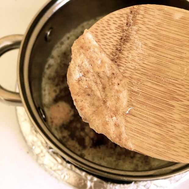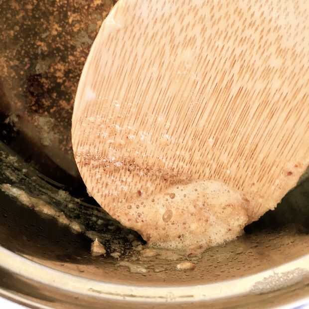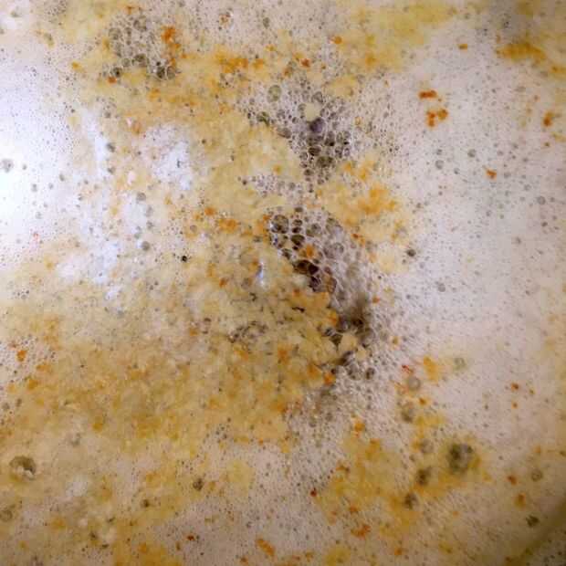 Tomar una cuchara ranurada y sacar la capa superior crujiente, de color amarilla de la mantequilla de búfalo. Deseche las migajas y luego colar la mantequilla de búfalo a través de una doble capa de paño de queso. Verter lentamente sobre la tela para que no desborde el ghee. Toma algún tiempo para pase a través de la tela del queso.